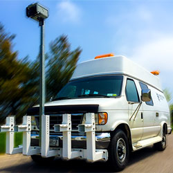 Penetradar's ThermaMap System shown above scanning a bridge deck for delamination. Delaminations can be detected by a thermal difference in the concrete. The camera's wide angle lens permits full lane infrared capture on the bridge deck. Only one pass is needed per lane.