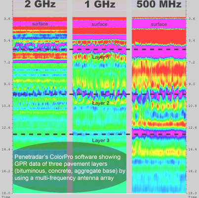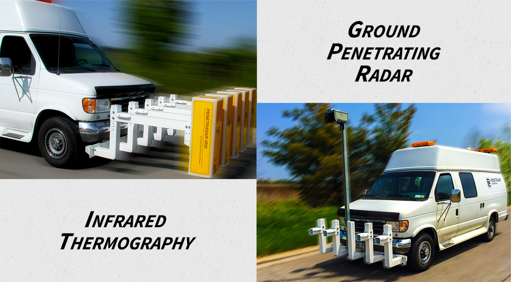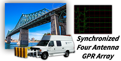 Penetradar Corporation specializes in the inspection of large and complex bridge decks with our patented ground penetrating radar (GPR) four antenna array which allows simultaneous collection of radar data across a twelve foot lane in one pass. Four channels of radar data are collected with the same distance referencing...
